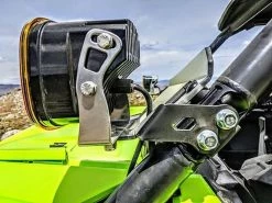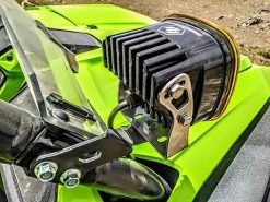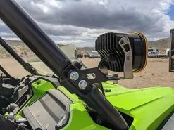 A strong, easy way to mount lights to your A pillars on the Honda Talon. These extended light mounts are specifically designed to be used in conjunction with the Honda full and half windshields. The light is pushed 1″ further forward than our standard mount in order to clear the windshield. Â