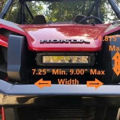 This light bar mounting kit allows you to mount a light bar in the upper grill opening on your Honda Talon. The mounting bracket mounts using existing radiator shroud push-pins, so no cutting or drilling is needed. The slotted mounting tabs allow for various width light bars, and pressed in nuts simplify installation.