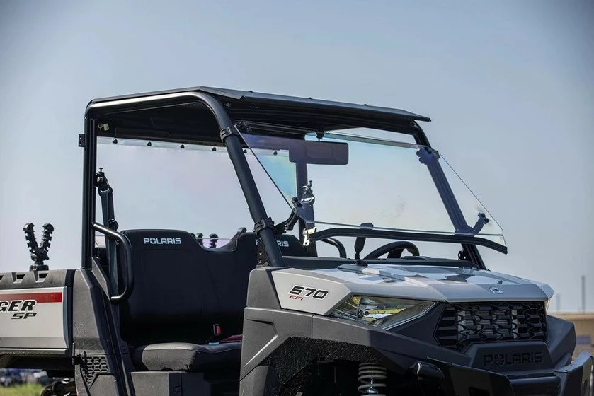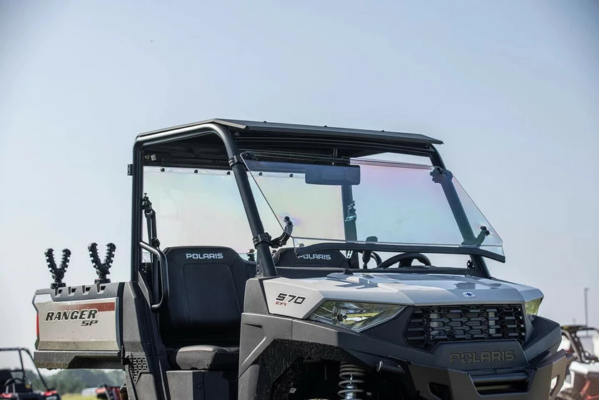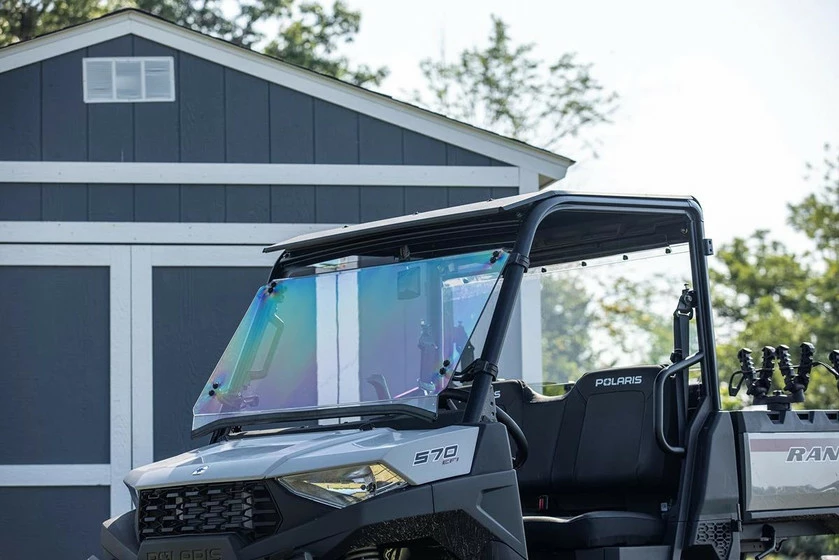 Custom design Full-Tilt UTV/SxS Windshield for Polaris Mid-Size Ranger 2022 Models. 1/4″ abrasive-resistant poly-carbonate with Scratch Resistant finish.