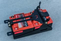 TheĀ Madigan Can-Am Maverick X3 Dual Battery MountĀ fits 2 Odyssey 925 Batteries. It features a compact 1/8 inch Steel box that mounts under the passenger seat to help power additional accessories that the factory battery cant. Available in only Raw or Black. Made in USA