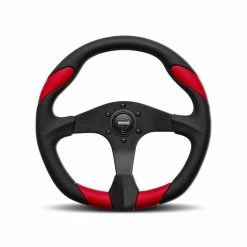 Make your interior stand out with racing-inspired red accents found on the MOMO Quark Steering Wheel or tone it down for a stealth look with black polyurethane and black perforated airleather inserts. The grip widens just above the spokes for better comfort where drivers rest their hands. Angular shapes combined with smooth organic radii make the Quark a unique centerpiece of your vehicle’s interior.