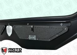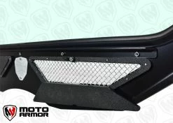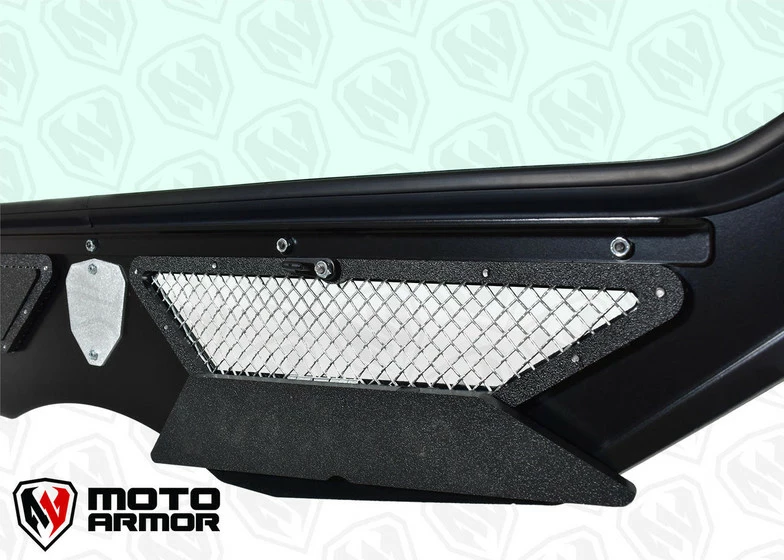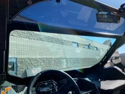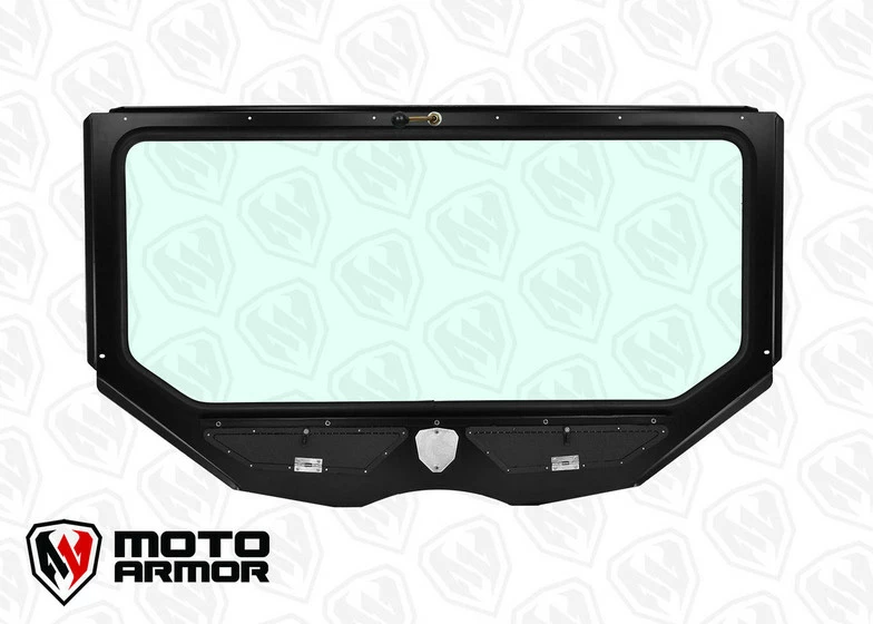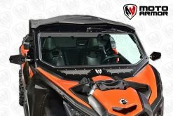 Moto Armor Full Glass Windshield for the Maverick X3. Features the widest view possible offered in a glass windshield. Vent with woven stainless steel mesh helps keep cool and helps with dust in the cab. Dark tinted poly carb visor helps to increase the viewing area.Â