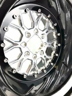 Packard Performance Wishbone UTV Wheel (15×7) (4×110) (Silver): If you want both performance and incredible looks in a SXS (side by side)Â wheel look no further. This twenty-four spoke design was inspired by the need for an extremely strong lightweight wheel for our Yamaha YXZ race platform when pushing big power. These two-piece wheels are made of strong lightweight 6061 billet centers that bolt to the wheel drum using stainless hardware.