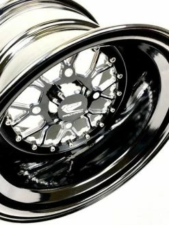 Packard Performance introduces Ultra Light Wheels: If you want both performance and incredible looks in a SXS (side by side)Â wheel look no further. This twenty-four spoke design was inspired by the need for an extremely strong lightweight wheel for our Yamaha YXZ race platform when pushing big power. These two-piece wheels are made of strong lightweight 6061 billet centers that bolt to the wheel drum using stainless hardware.
