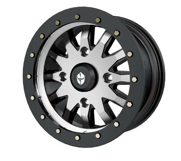 For ultra-strong performance, add the powerhouse Pro Armor Halo wheel. At an ultra-strong 1600 lb load rating, this wheel adds incredible strength without the extra weight. Featured is a 12-spoke design for undeniable style and a black beadlock ring that both complement the look of your vehicle. Includes Ring and hardware. 156 bolt pattern for Polaris (General, RZR XP, RZR XP Turbo, RZR Turbo S, Ace, Ranger, Sportsman, Scrambler). Yamaha (YXZ 19+). Kawasaki Mule Pro FXT). Arctic Cat (Wildcat XX)