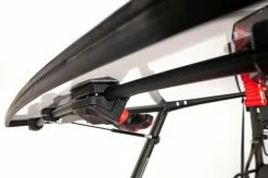 Spherical ball rod ends are utilized as self-aligning hinges along the top of the windshield, allowing for the windshield to pivot freely throughout its range of motion and minimize any binding that may occur. The center retainer and rub plate act as an upper hinge point and helps minimize oscillation when riding with the windshield in the opened position.