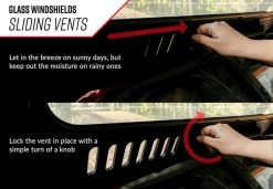 With the included manual wiper and built-in vents, you can keep your view clear and your cab comfortable. The wiper mounts to clear the largest possible area directly in front of the driver. The vents let in a nice breeze but seal completely when it’s too cold or rainy.