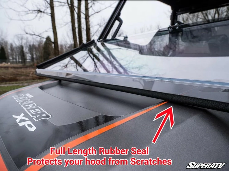 Your Ranger XP 570 doesn’t have to sit in your garage for half the year. Get SuperATV’s Scratch Resistant Flip Down Windshield and you can ride in comfort whether it’s raining, snowing, or sunny. You get total control of your airflow with the ability to flip this windshield down on the fly. With a flip down windshield, the weather will never cancel your ride again.