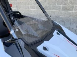 Made from UV stabilized Polycarbonate. This windshield has a glass like hard coating on both sides to resist scratches. We highly recommend this windshield over the regular polycarbonate windshields because they hold up much much better to scratches. We only use name brand Makrolon or Lexan Polycarbonate! Includes Anodized Billed mounts with quick release knobs for quick removal and installation.